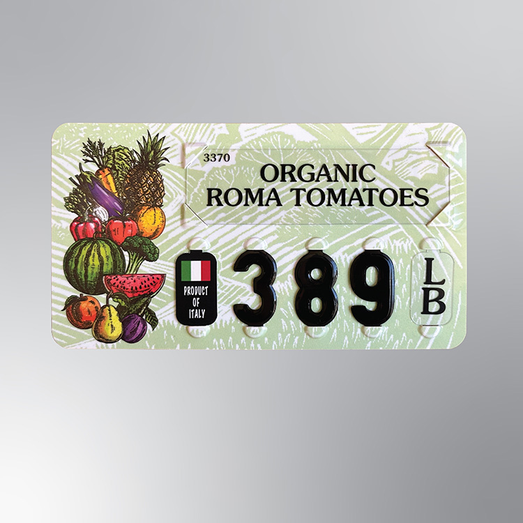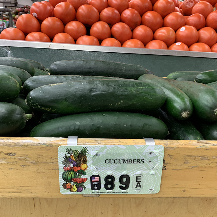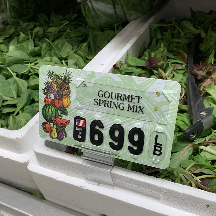 The Model #75-GR is a 3” x 5-1/2” laminated produce price tag, designed to add color, clarity, and durability to your wet racks and display tables. With vibrant graphics and a long-lasting finish, this tag is both a functional pricing tool and a visual enhancement for your produce department.
