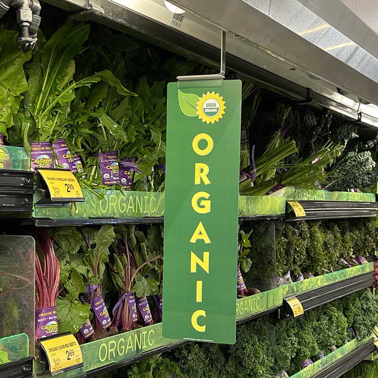 Blade signs and “aisle violators” are powerful marketing tools designed to grab customer attention and highlight products, promotions, and branding messages. These eye-catching signs attach easily to shelves or hang from our magnetic grip tag holders, extending into aisle space just enough to be noticed without obstructing flow.