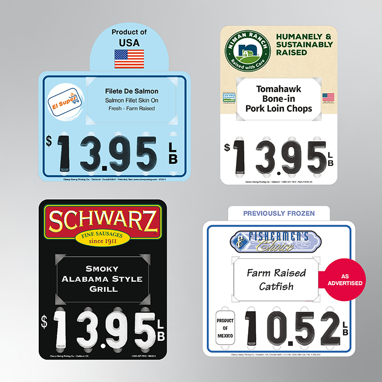 Featuring our unique DoubleTalk® windows for service cases, these tags allow associates to view the product name and PLU number from behind the case, making operations smoother and more efficient. Made for all departments, our price tags can be customized to fit your specific needs. We also make tags specifically for hot food cases with patented clips and holders.
