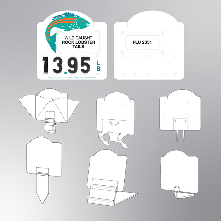 Each tag includes a #15 name insert (1-1/4” x 2-1/2”) with our patented Double-Talk™ window, allowing store associates to view the PLU number from the back—saving time and ensuring accuracy when setting up the case each day.