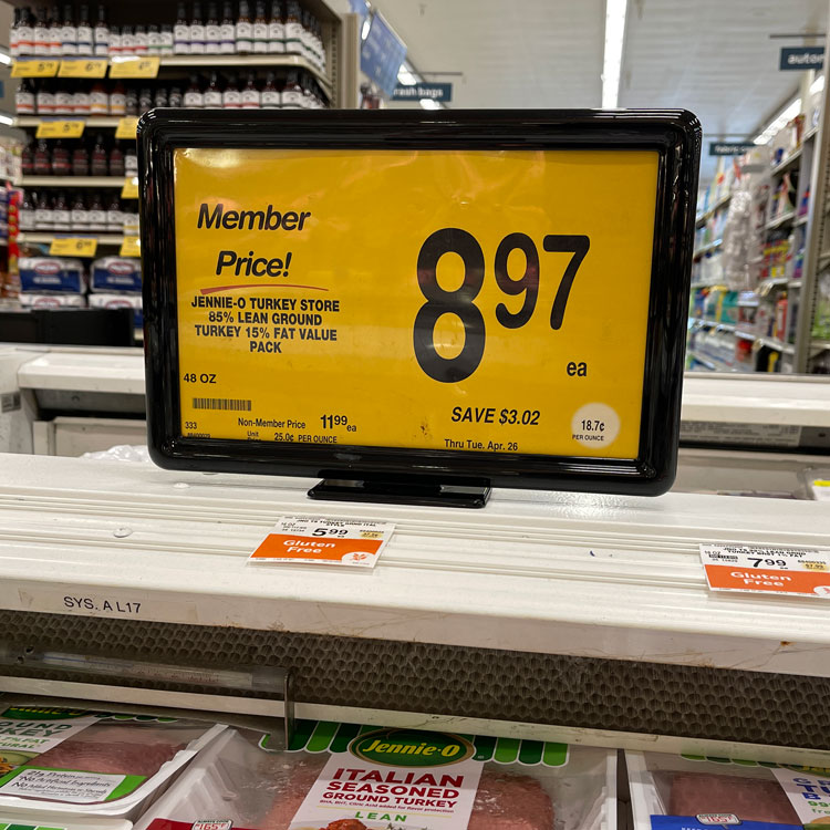 Model FTN features our patented sign holder with model 130 narrow “T” base. Ideal for meat counters, produce tables and coffin freezers; the 2” x 4” base is perfect for narrow spaces and the optional magnets secure the base in place. Can be used with suction cup for freezer doors as a side-view assembly.