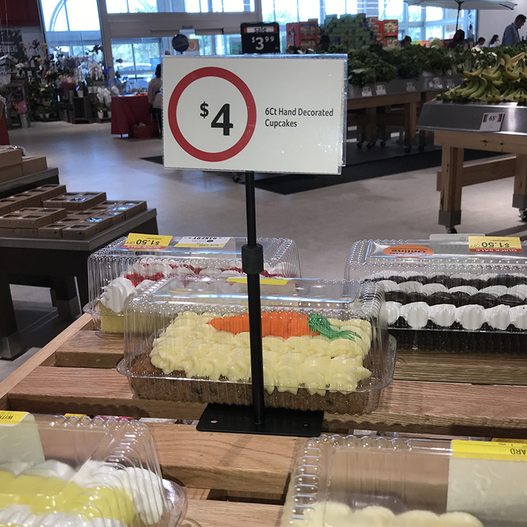 The sturdy 4″ x 4″ base features four 1/4″ diameter holes for easy fastening to fixtures, while the stem is welded near one edge of the base for a secure hold. The 6″ long inner stem includes two 1-1/4″ high x 1-3/4″ wide label holders, making it compatible with our plastic sign holders, plastic shelf clips, or metal shelf clips.