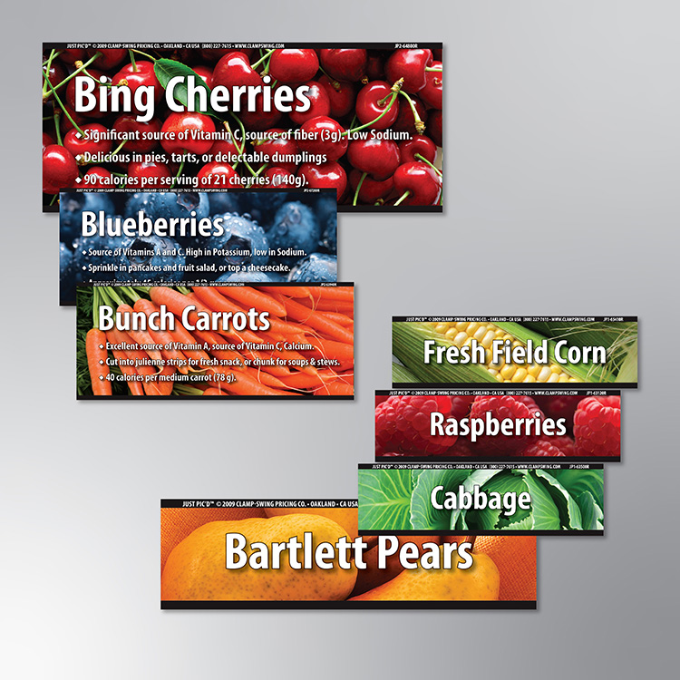 Bring your produce department to life with our Just Pic’d™ stock signage system, combining vibrant, high-resolution photographic images with our exclusive Fresh Facts© nutrition information. Designed to appeal to today’s health-conscious shoppers, these signs do more than just display prices—they educate, attract, and sell.