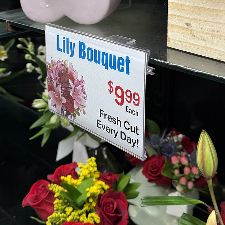 The View-Lok™ Model GC Glass Clip is the perfect solution for floral department glass shelves and other 3/8” thick shelving applications. Designed for secure attachment, this durable clip ensures that price tags and signage remain clearly visible and professionally displayed.